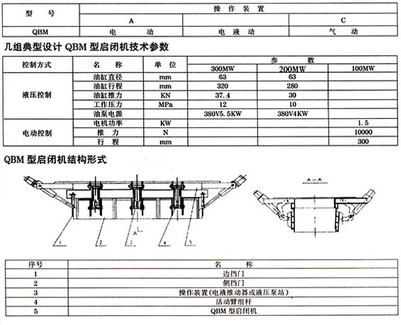 概 述 QBM型啟閉機安置在鍋爐渣井下部,在撈渣機正常工作時,作爐底密封。在撈渣機旁出現保障,需檢修時,關閉此門,作臨時儲渣及爐堂密封。 QBM型啟閉機由若干個部分組成。其安裝尺寸根據工況需求確定,關斷門與渣井之間采用螺栓連接,下部直接插入撈渣機水槽中。 QBM型啟閉機的操作控制有電液動、電動、氣動方式。選用何種方式,定貨時請注明。