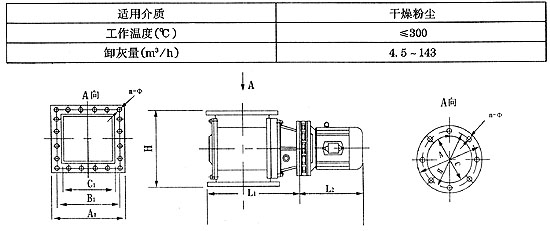 該閥由閥體、傳動軸、葉片和減速器等組成,減速電機帶動軸和葉輪旋轉,完成給卸料。